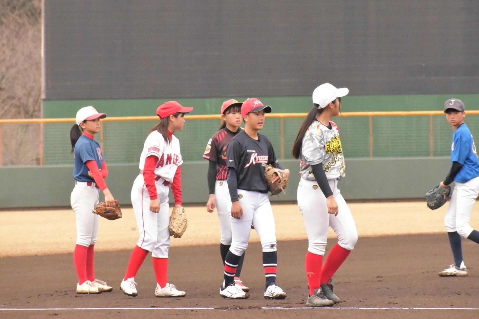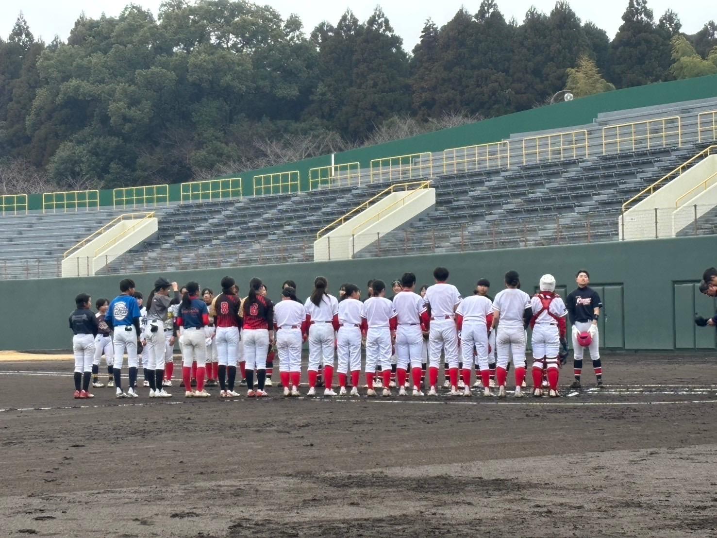 3月2日日曜日、ボーイズリーグ選抜九州ガールズ様との合同練習会を行いました。 全員でのノックの後、試合の経験値を少しでも上げて行ける様に両チームに分かれて練習試合を行いました。午前と午後での2試合を予定してましたが生憎の雨となり1試合の途中6回終了時点で中止となりました。 他リーグのレベルの高い選手達との交流で良い経験が出来た時思います。 また、体験者も3名参加頂き試合参加してもらいましたが、3名共、ポテンシャルが高く先輩達の試合に出ても落ち着いたプレーを見せてくれました。是非今後も一緒に成長出来たらと思います。 | |||
